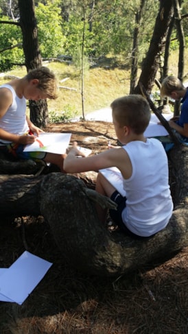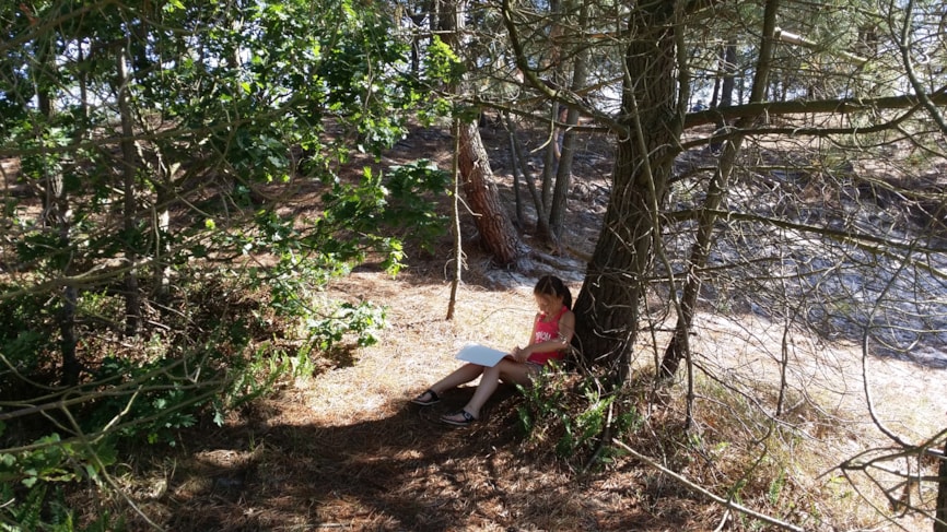 Vanmorgen zijn we de warme school ontvlucht en hebben op een duin, in de schaduw, met een een fris windje, een tekenles gedaan. Een heerlijke ochtend! Jelmer tracteerde ons op chips. Hij vierde zijn verjaardag ”vooruit”. De tekeningen hebben we aan elkaar laten zien en besproken. Tevens hebben we het jaar afgesloten met een rondje, langs iedereen individueel. Heel mooi. Heel speciaal.