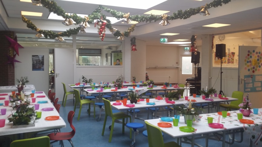 Het lokaal is op orde gemaakt. Nog even wachten... en dan start ons kerstdiner!